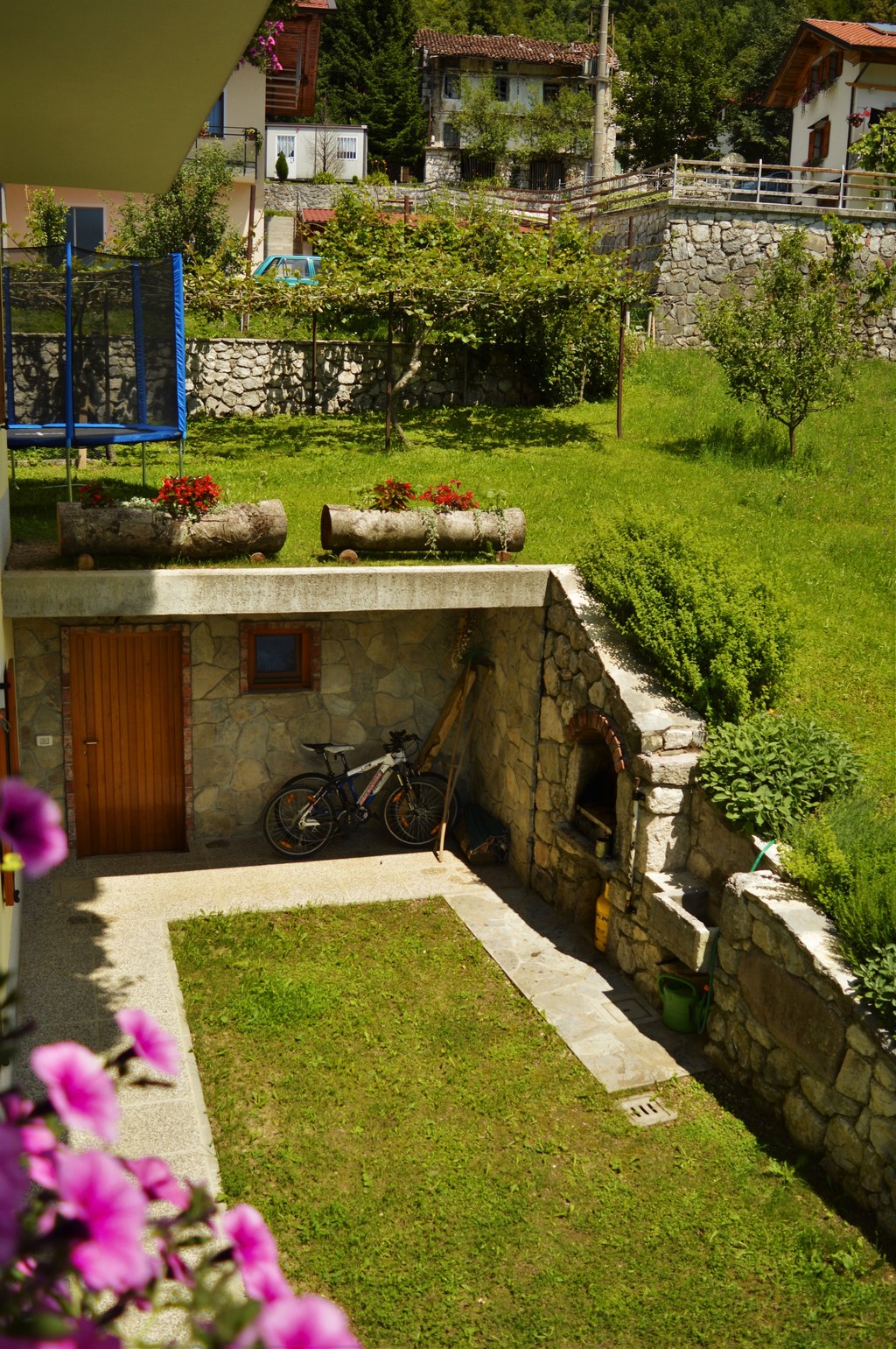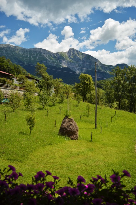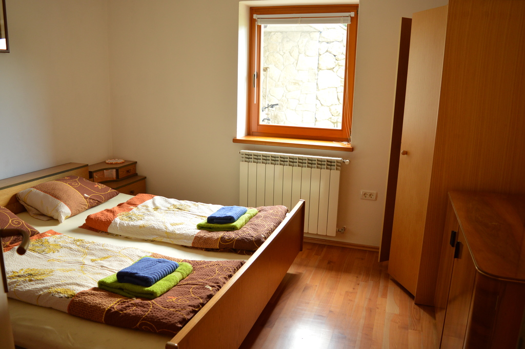 Located in a peaceful sunny village, at the foot of Krasjivrh. Our house lies at the edge of the village Magozd, above the waterfall Kozjak, 7 kilometres from Kobarid. Our apartment is on the ground floor of the house, has own entrance, kitchen, bathroom, bedroom, covered terrace and plenty of outdoor space where you can enjoy your breakfast, grill something delicious on the barbecue, lie in the sun or in the shade. You can let your children to play carefree and listen to yourself or just enjoy and be one with nature.